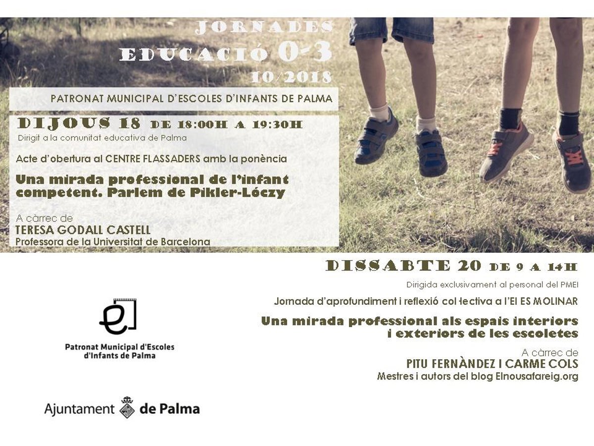 La primera actividad consiste en una conferencia este jueves, abierta a toda la comunidad educativa y gratuita. La conferencia, 'Una mirada professional de l'infant competent. Parlem de Pikler-Lóczy', será impartida por la investigadora de la Universitat de Barcelona Teresa Godall. Tendrá lugar a las 18.00 horas en el Centre Flassaders.