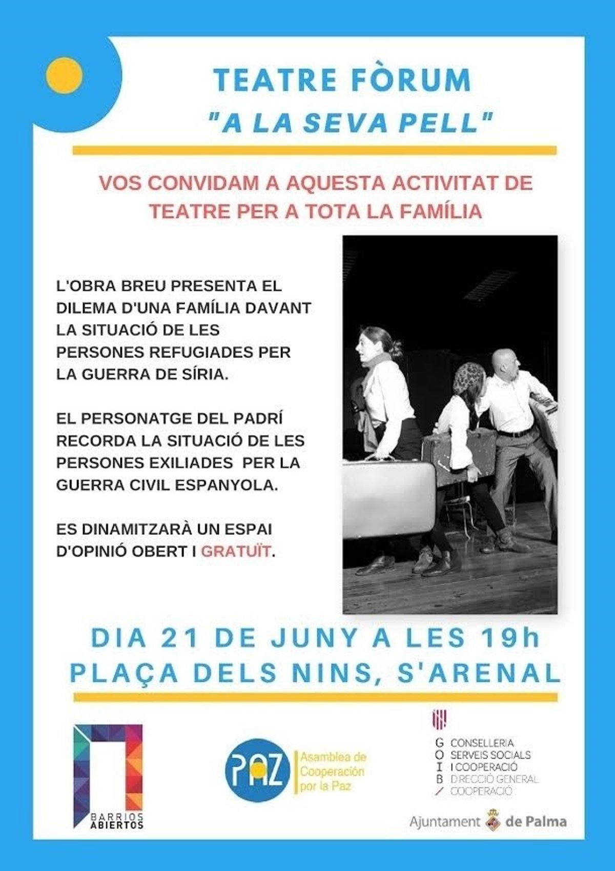 La plaça dels Nins de s'Arenal acogerá el miércoles 21 de junio a partir de las 19.00 horas un espacio de teatro fórum para toda la familia con la representación de la obra 'A la seva pell'.