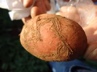 El daño que causan en el tubérculo es eminentemente estético y se puede eliminar quitando la piel, en la que se observan largas galerías sinuosas de aspecto acorchado y pequeñas verrugas superficiales que no afectan a la carne de la patata, aunque las heridas provocadas por las larvas pueden convertirse en una vía de entrada para otros patógenos.