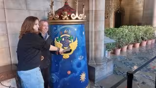 La representante de la Plataforma por el Transporte Público, Margarita De Noia, y de la Federación de la Asociaciones de Vecinos de Palma, Rfel Garcia, entregan la carta a los Reyes Magos. - EUROPA PRESS