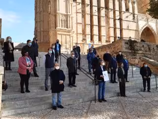 Plataforma Vacunas, Salud y Economía ha guardado este martes un minuto de silencio por las víctimas de la COVID-19 y por los profesionales que luchan contra esta enfermedad, en un acto cívico, celebrado en las escaleras situadas bajo la Catedral de Mallorca, en el que han vuelto a reclamar la vacunación de, al menos, el 70 por ciento de la población de Baleares antes de verano.