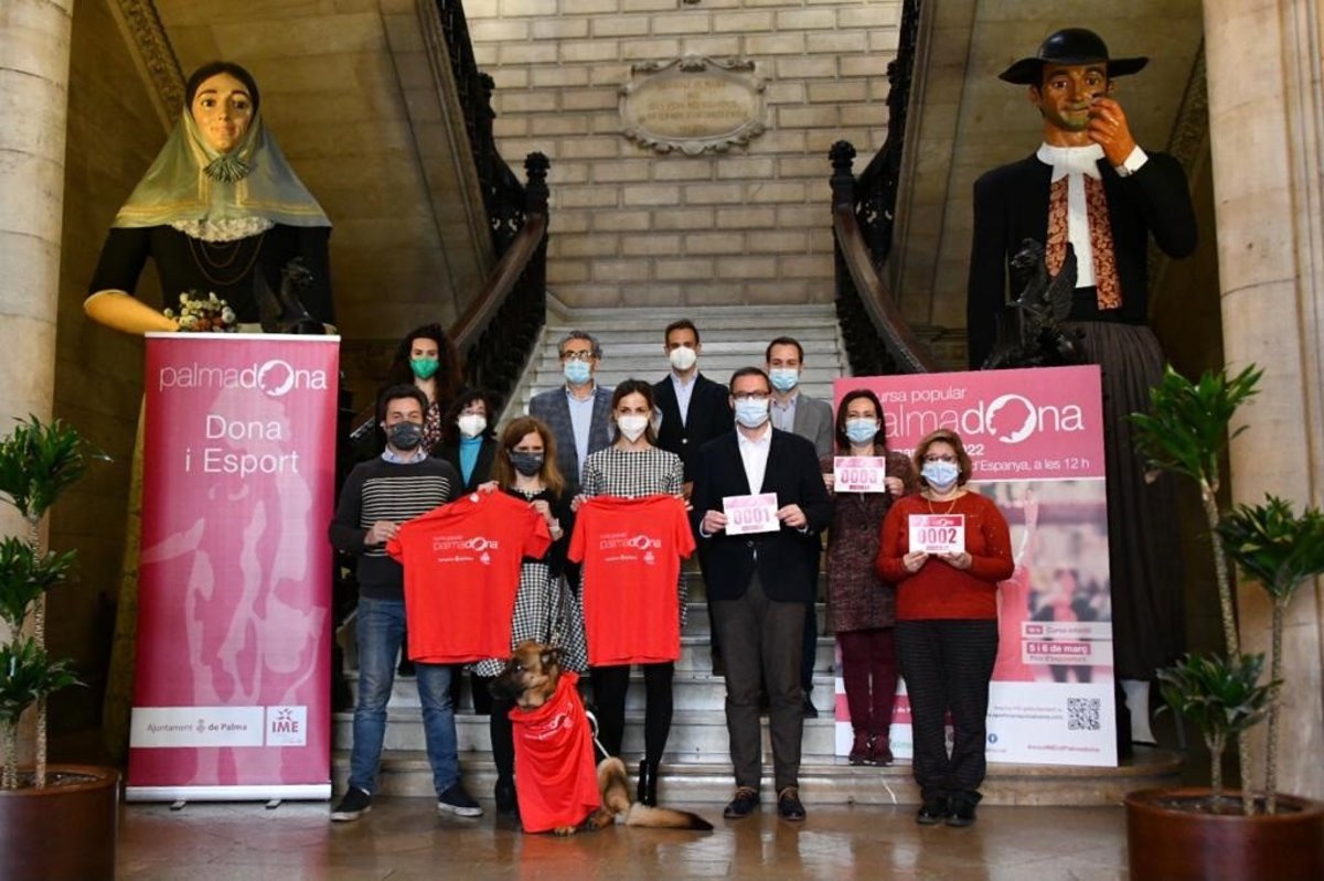 El alcalde de Palma, José Hila, y el regidor de Deportes, Francisco Ducrós, han presentado este miércoles en el vestíbulo de Cort la quinta edición de la carrera popular Palmadona, una prueba organizada por el Instituto Municipal del Deporte en homenaje a la mujer y su importante presencia en el deporte, que se celebrará este domingo en la plaza de España.