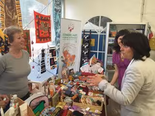 Durante estos días, se llevarán a cabo diferentes actividades además de la exposición y venta de productos de comercio justo, como el taller 'Tejiendo sueños - tejiendo mandalas' que se ha llevado a cabo esta mañana, y donde los participantes han podido aprender a cortar, tejer y bordar mandalas.