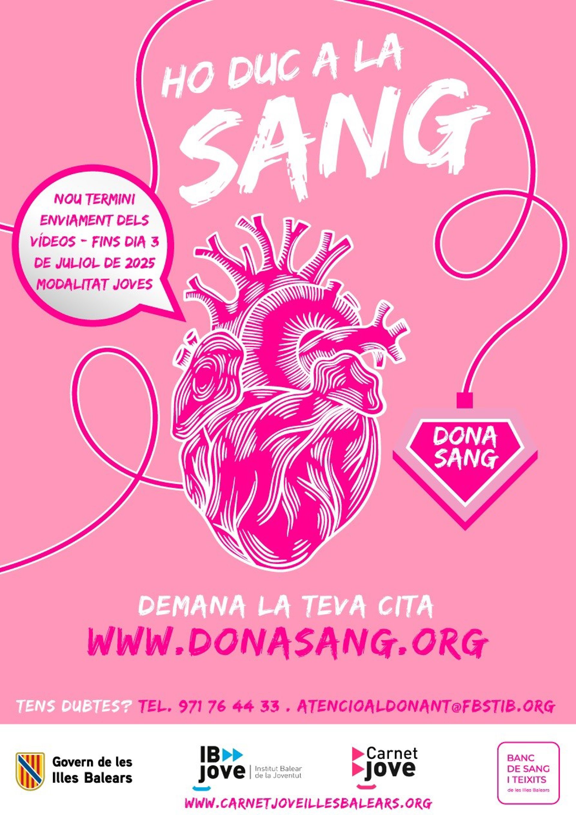 El plazo para presentarse al concurso de vídeos 'Ho duc a la sang', que busca promover la donación de sangre y garantizar el relevo generacional de los donantes en Baleares, terminará este próximo jueves.