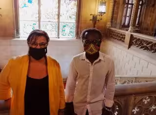 La vicepresidenta del Consell de Mallorca y consellera de Cultura, Política Lingüística y Patrimonio, Bel Busquets, y el portavoz de MÉS en la institución insular, Guillem Balboa. - MÉS PER MALLORCA