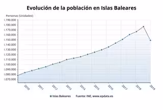 En este sentido, de los nuevos habitantes de Baleares, 1.946 se deben al crecimiento vegetativo, mientras que 15.294 corresponden al saldo migratorio exterior positivo y 3.686 saldo migratorio interior positivo, es decir, ciudadanos que llegaron de otras comunidades.