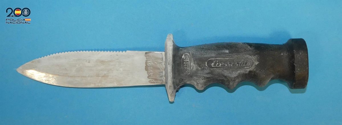 El cuchillo con una hoja de unos 12 centímetros fue intervenido y localizado por los agentes en una jardinera muy próxima al lugar de los hechos.