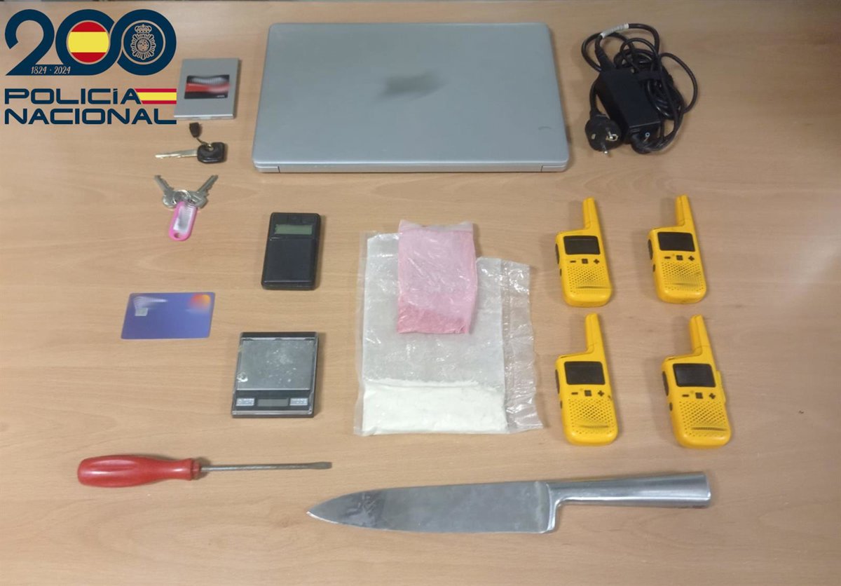 En la mochila se le intervinieron también dos básculas de precisión, cuatro equipos de transmisión, un destornillador, una llave de motocicleta, un ordenador, dos cascos de moto, dinero en efectivo y un cuchillo.