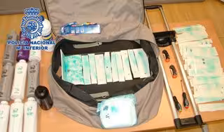 Tras diversas pesquisas, los agentes procedieron a la entrada y registro en el domicilio, donde se localizó en el comedor una bolsa de auto cierre con un kilo y trescientos gramos de cocaína y una bolsa con una plancha de plástico hueca y con restos de cocaína que se correspondía perfectamente con un doble fondo de una maleta que se encontraba desmontada.