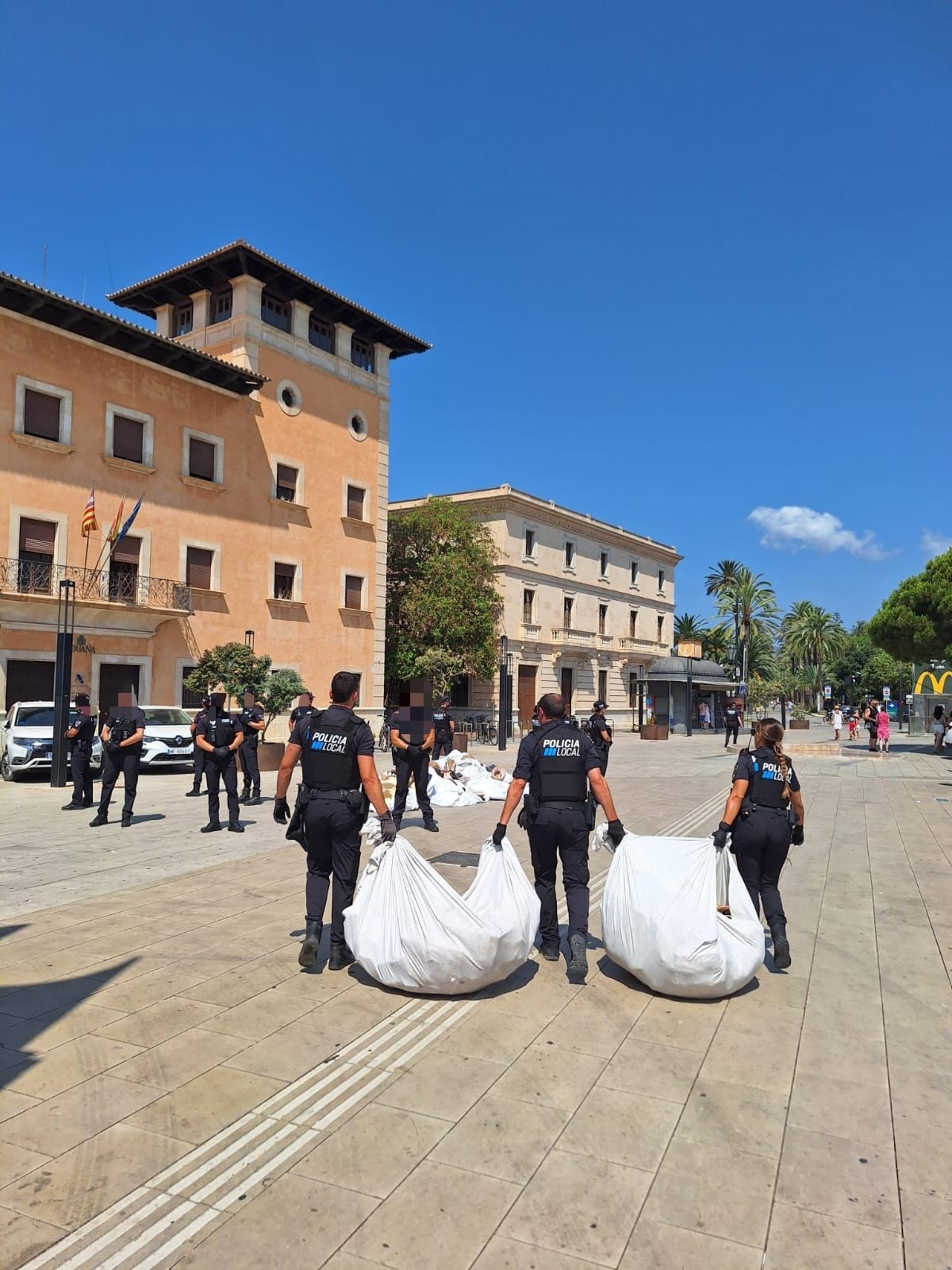 Con estos operativos, la Policía Local reafirma su compromiso contra la venta ambulante ilegal en cumplimiento de lo establecido en la Ordenanza para el Fomento de la Convivencia Cívica de Palma.