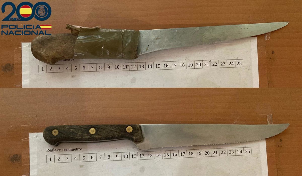 Los agentes lograron dar con el paradero del agresor y le arrestaron en la vivienda en las que se encontraba. También le intervinieron los cuchillos con los que había amenazado a la víctima. Al detenido le constan antecedentes policiales.