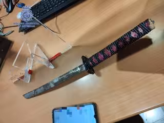 La Policía Nacional ha detenido a un hombre de 30 años por pasearse con una katana y causar daños en varios vehículos aparcados en Playa de Palma.