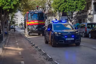 Un vehículo de Policía Nacional y otro de bomberos en Ibiza tras las lluvias, a 1 de octubre - Germán Lama - Europa Press