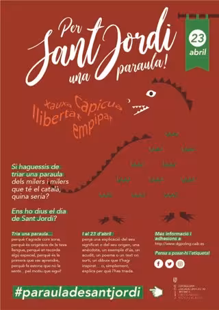 Políticos, representantes de diversos sectores de la sociedad civil, así como colectivos y asociaciones de distintos ámbitos han compartido este jueves en redes sociales sus palabras preferidas en catalán, con el hashtag #parauladesantjordi, para unirse a la iniciativa de la Dirección General de Política Lingüística 'Per Sant Jordi, una paraula!'.