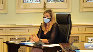 La consellera de Salud, Patricia Gómez, durante su comparecencia parlamentaria para informar sobre el 'macrobrote' asociado a viajes de fin de curso en Mallorca. - PARLAMENT IB