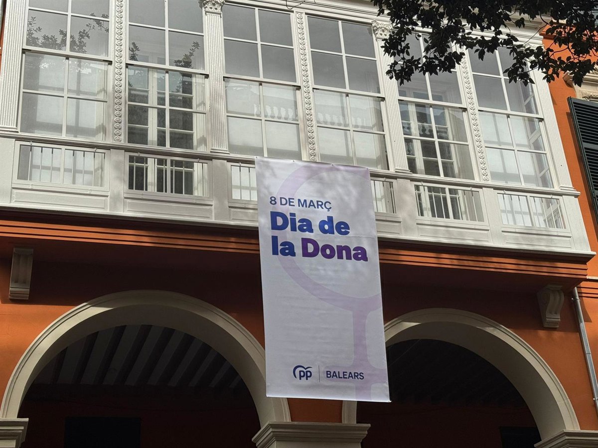 El PP de Baleares ha colgado del balcón de su sede, ubicada en Palma, una bandera conmemorativa del 8M que pretende ser "un símbolo de lucha hacia la eliminación de la brecha salarial asociada a la maternidad, garantizar la conciliación de la vida laboral y familiar de padres y madres, la promoción de la independencia económica de las mujeres y la eliminación de todas las formas de violencia de machista".