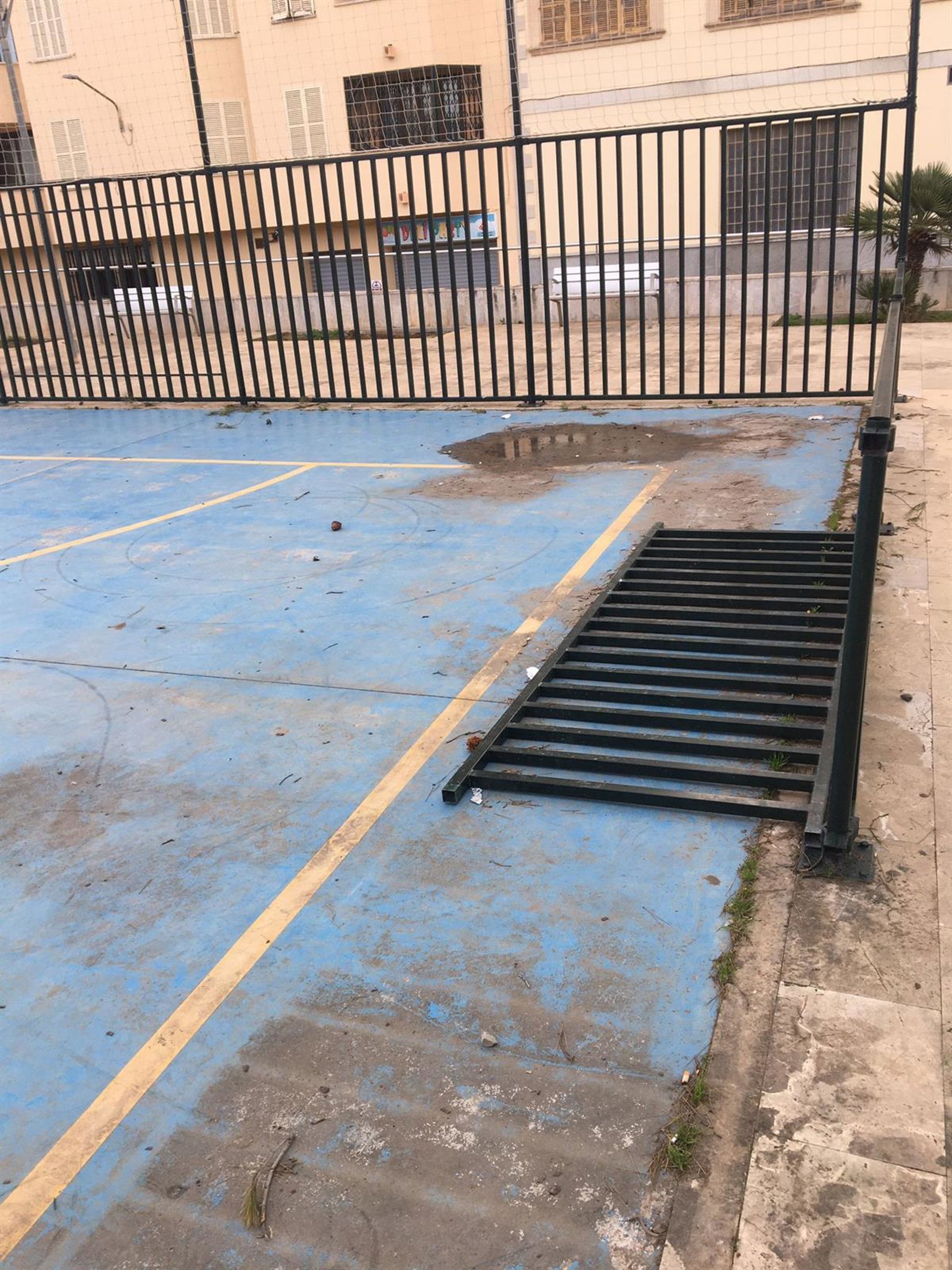 Según ha explicado la formación en una nota de prensa, hay barandillas de cierre de la pista deportiva rotas, sin reparar y otras en el suelo, así como mucha suciedad.