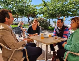 El presidente del PP de Baleares, Biel Company, en la terraza de un establecimiento de hostelería. - PP