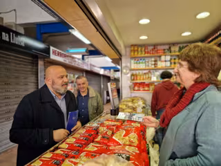 El líder 'popular' ha visitado este martes el mercado y sus alrededores y ha hablado con comerciantes locales y vecinos.