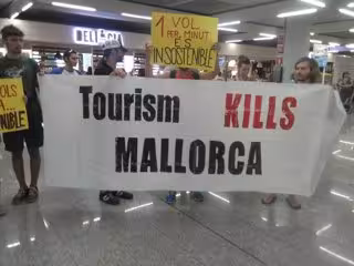 El pasado sábado, las plataformas 'Ciutat per qui l'habita' y Arran se concentraron en el aeropuerto de Palma con una pancarta con el mensaje de 'El turismo mata Mallorca'. Además, a principios de mes, dos miembros de Arran colgaron una pancarta en un autobús turístico detenido en la zona del Castillo de Bellver (Palma) como acción de protesta contra la masificación turística. Igualmente, varios hoteles de Palma han sido objeto de pintadas contra el turismo.