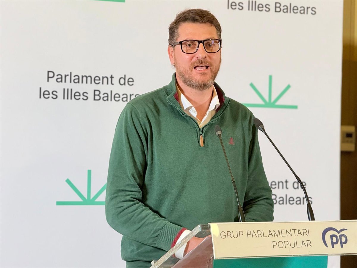 El portavoz del PP en el Parlament, Sebastià Sagreras, en rueda de prensa. - PP