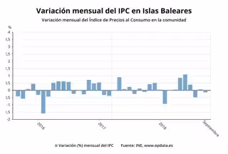 El Índice de Precios de Consumo (IPC) ha bajado un 0,1 por ciento en septiembre en Baleares con respecto al mes anterior, mientras que la media nacional ha aumentado un 0,2 por ciento.