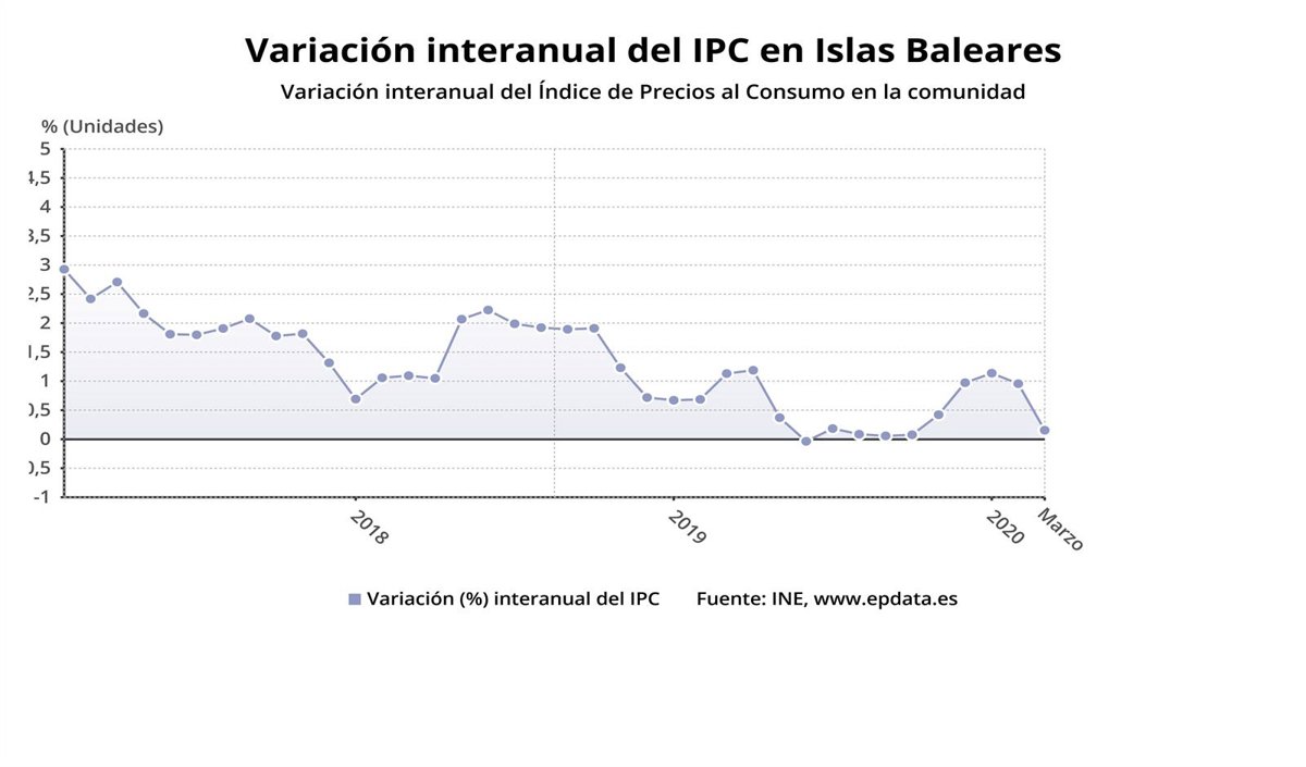 El Índice de Precios al Consumo (IPC) bajó un 0,3% en marzo en Baleares en relación al mes anterior, y la tasa anual se situó en un 0,1%, según los datos definitivos publicados este miércoles por el Instituto Nacional de Estadística (INE).