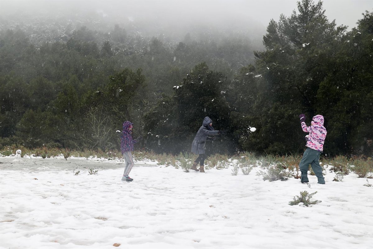Varios niños juegan con la nieve en la Serra de Tramuntana. - Isaac Buj - Europa Press