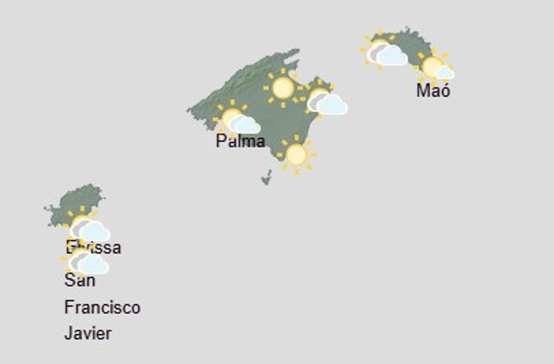 La madrugada, por contra, ha estado acompañada de cielos nubosos con chubascos y posibilidad de tormentas, especialmente en Mallorca. Por la mañana irán remitiendo y, ya por la tarde, predominarán los cielos poco nubosos.