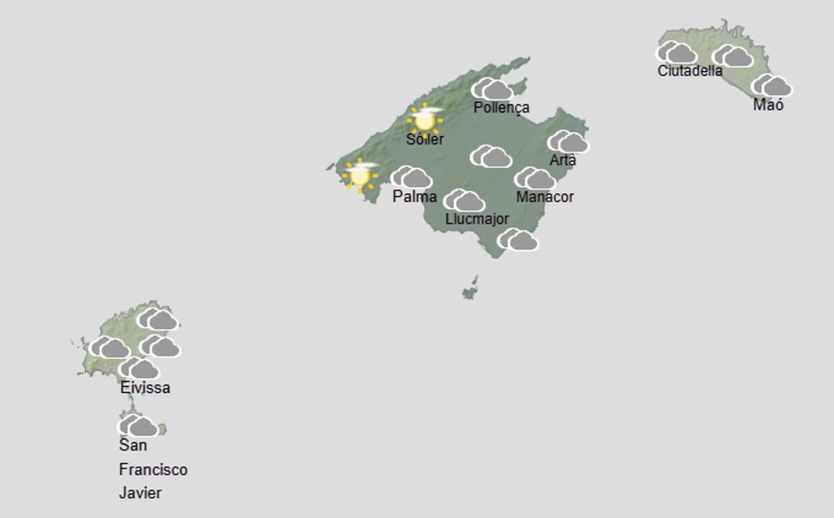 La Agencia Estatal de Meteorología (Aemet) ha previsto para este sábado en Baleares cielo nuboso o cubierto, con temperaturas nocturnas en ascenso, que podrá ser localmente notable.