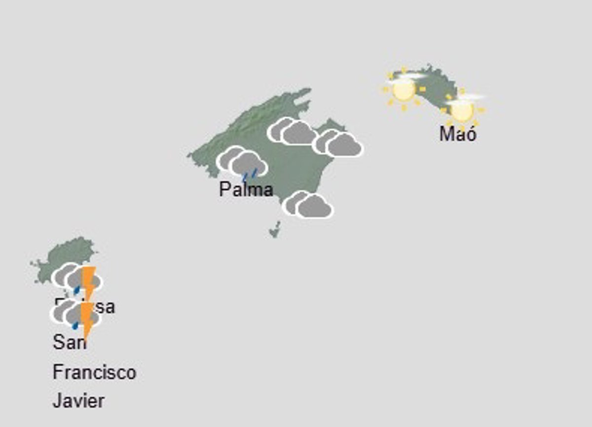 No se descarta la posibilidad de que caigan precipitaciones en forma de granizo de pequeñas dimensiones. Las temperaturas irán en ligero descenso y el viento será de componente sur, moderado en las Pitiusas y flojo en el resto del archipiélago.