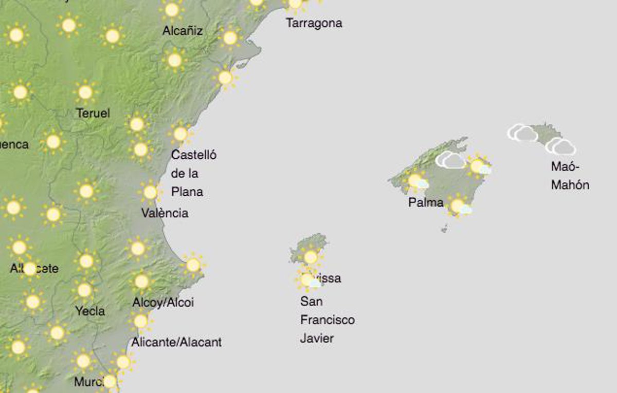La Agencia Estatal de Meteorología (Aemet) pronostica para hoy viernes, 16 de julio, en Baleares: predominio de cielo poco nuboso con nubes de evolución diurna. Temperaturas nocturnas sin cambios o en ligero descenso y diurnas en ligero ascenso. Viento flojo con brisas costeras.