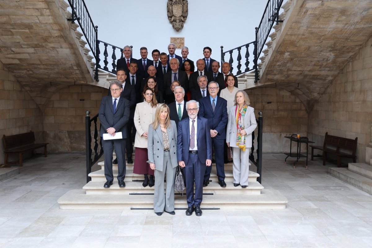 La presidenta del TS y el CGPJ, Isabel Perelló, y el presidente del TSJIB, Carlos Gómez, en el Palacio de Justicia junto a presidentes y presidentas de TSJ. - ISAAC BUJ - EUROPA PRESS
