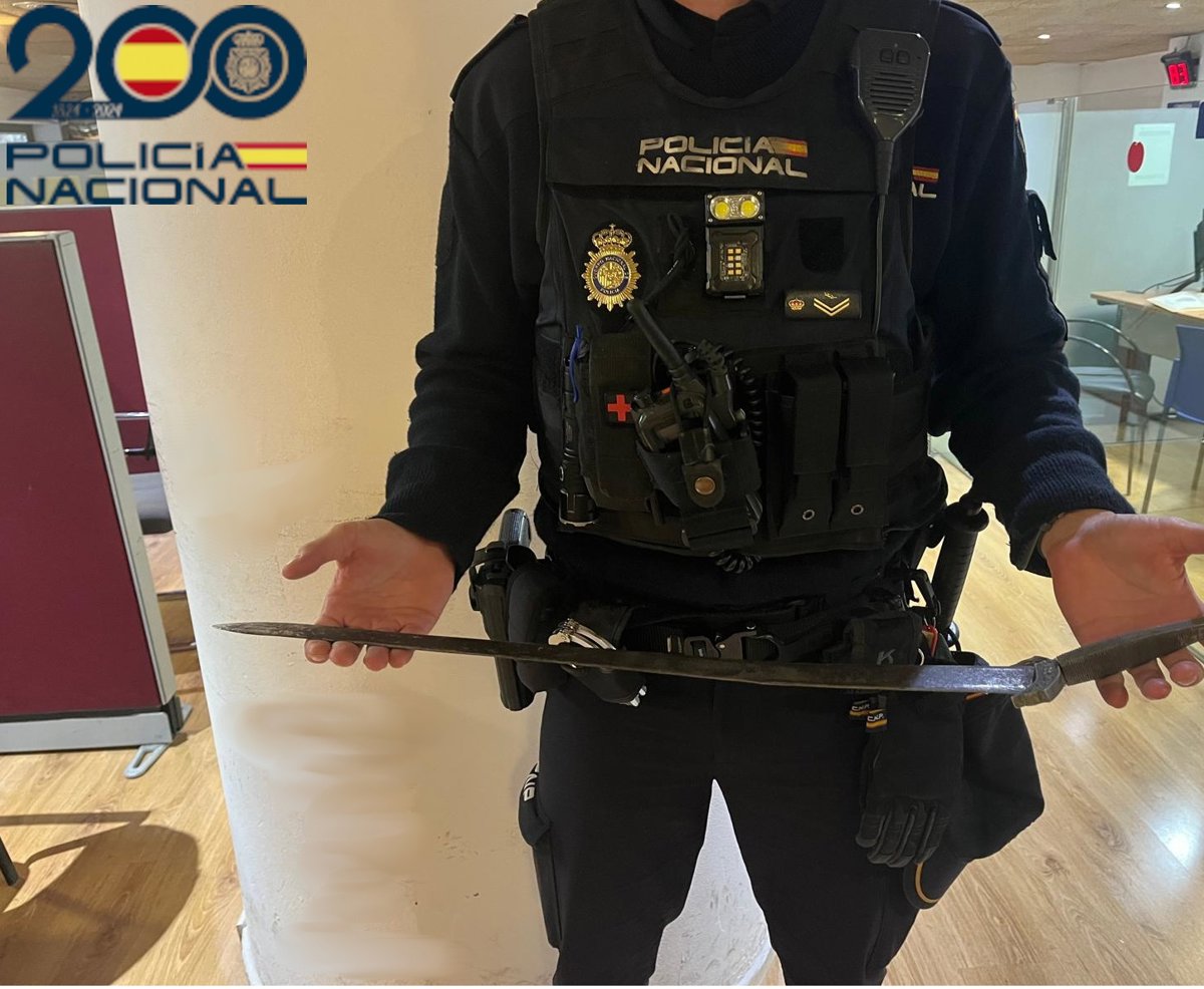 La víctima indicó que uno de los agresores llevaba un cuchillo y varios testigos relataron que los sospechosos llevaban también una espada, que se encontraba en el lugar de los hechos.