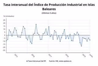 La tasa de producción industrial en Baleares ha caído un 7,8% en junio respecto al mismo mes del año anterior, siendo la segunda comunidad autónoma que más cae --tras Canarias--, según ha informado este jueves el Instituto Nacional de Estadística (INE).