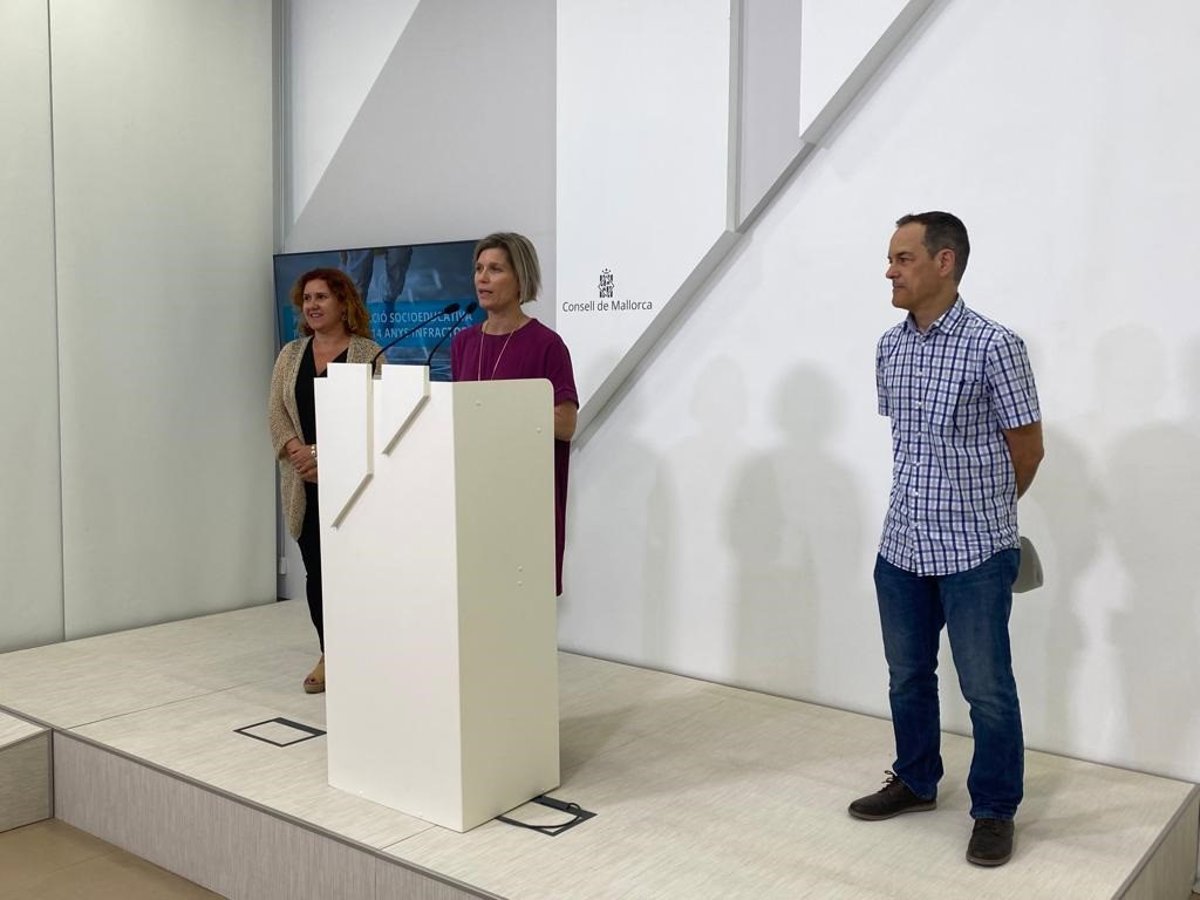 La presidenta del IMAS, Sofia Alonso, la directora insular de Infancia y Familia, Mari Ángeles Fernández, y el director educativo de la asociación GREC, Sebasti Gibert. - EUROPA PRESS