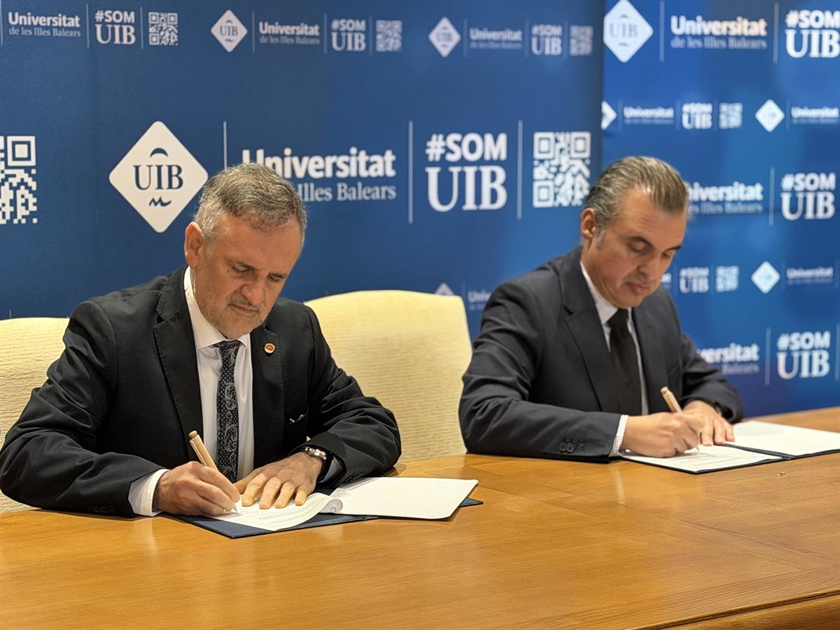 El conseller del ramo, Antoni Vera, y el rector de la UIB, Jaume Carot, han plasmado su firma en el acuerdo la mañana de este lunes.