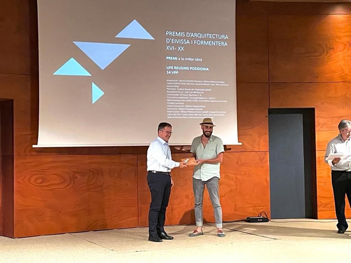 Según ha informado la Conselleria de Movilidad y Vivienda en una nota de prensa, durante la entrega de galardones celebrada este viernes 10 de junio en Ibiza, el conseller del ramo, Josep Marí Ribas, ha entregado la distinción al arquitecto del Ibavi, Carles Oliver que ha manifestado que "con Reusing Posidonia se desarrolló una línea de investigación basada en el decrecimiento del consumo de recursos y el crecimiento de confort. Gracias a los resultados de esta experiencia de aislamiento con posidonia, se ha podido aplicar en otros proyectos de Palma, Santa Eugenia, Ibiza y La Ribera".