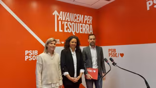 De izquierda a derecha, la consellera insular del PSIB, Sofía Alonso, la portavoz del PSIB en el Consell de Mallorca, Catalina Cladera, y el portavoz del PSIB en el Ayuntamiento de Palma, Xisco Ducrós, en rueda de prensa. - EUROPA PRESS