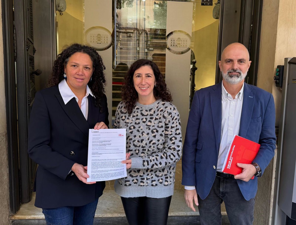 La secretaria general de la Federación Socialista de Mallorca, Amanda Fernández, y los consellers socialistas en el Consell de Mallorca Catalina Cladera y Jaume Mateu registran la ley - PSIB