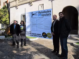 La portavoz adjunta del grupo, Fina Santiago, acompañada por otros representantes de la coalición, ha señalado durante un acto frente al Consolat, que estos recortes no se pueden justificar en un "ajuste presupuestario" puesto que son "un ataque frontal al bienestar social". En este sentido, ha lamentado que se lleven a cabo en sanidad, educación y servicios sociales, precisamente "los tres elementos fundamentales para la cohesión social de cualquier país".