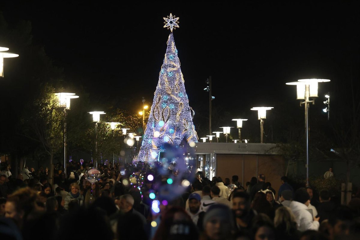 Cientos de personas durante el encendido de las luces de Navidad, por primera vez en La Plaza de España, a 22 de noviembre de 2025, en Palma de Mallorca, Islas Baleares (España). - Isaac Buj - Europa Press
