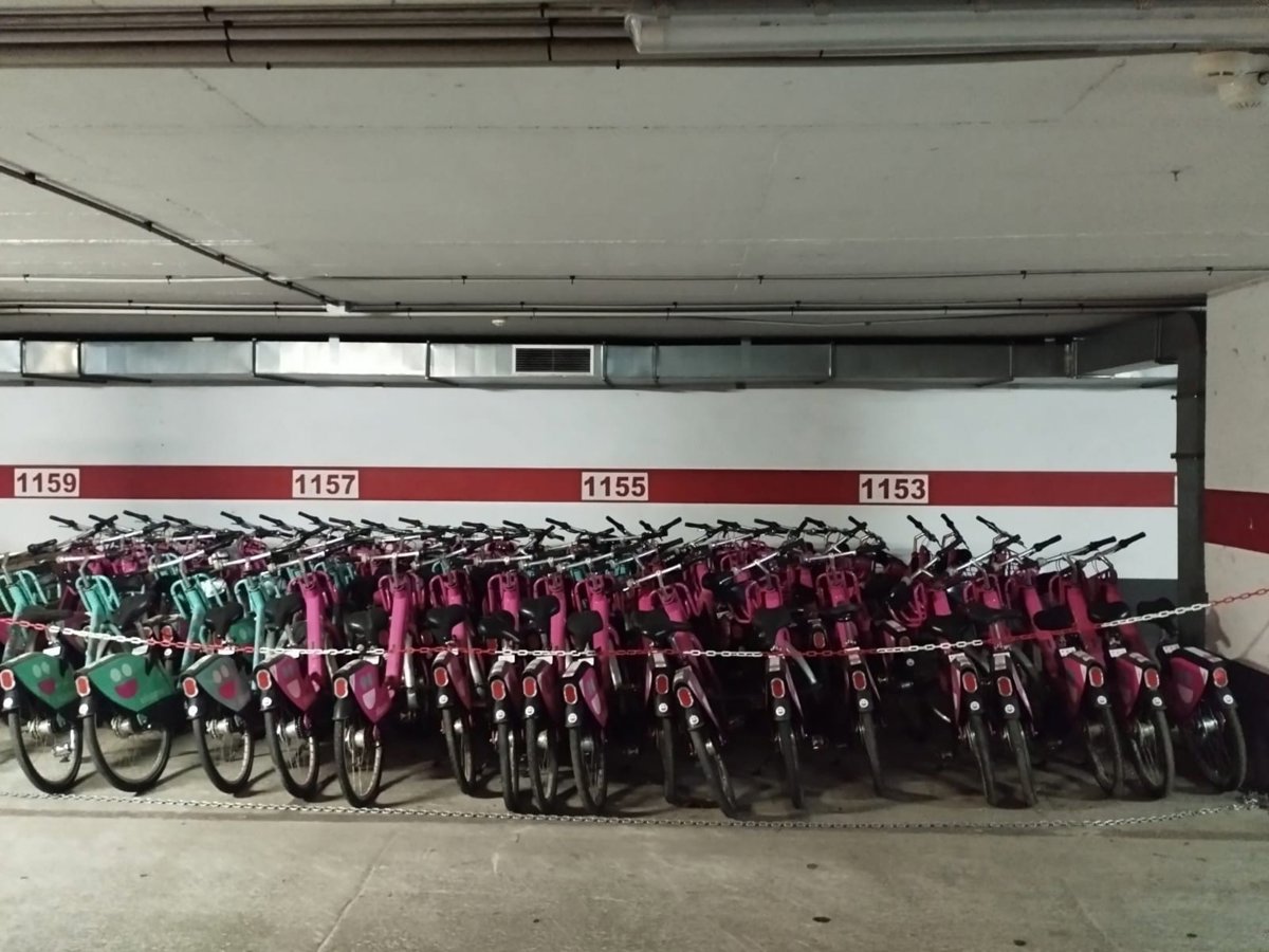 Bicicletas de BiciPalma almacenadas en el aparcamiento de Sa Riera. - PSOE DE PALMA