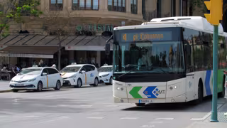 Archivo - Un autobús de la Línea 4 de EMT (Plaça Columnes - Ses Illetes) en la Plaza de España de Palma, junto a la parada de taxis. - EMT - Archivo
