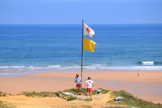 Archivo - Bandera amarilla en una playa - CRUZ ROJA - Archivo