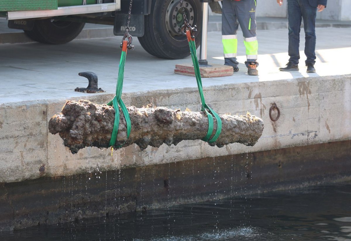 Uno de los cañones recuperados del pecio hundido en cala Ratjada. - CONSELL DE MALLORCA