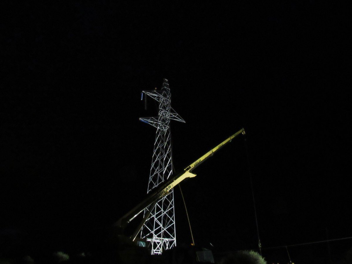 A mediodía de este martes se está trabajando para izar la segunda de las torres afectadas, así como también en la reparación de dos de las cúpulas de los apoyos adyacentes a estas torres, que también se han visto dañadas.