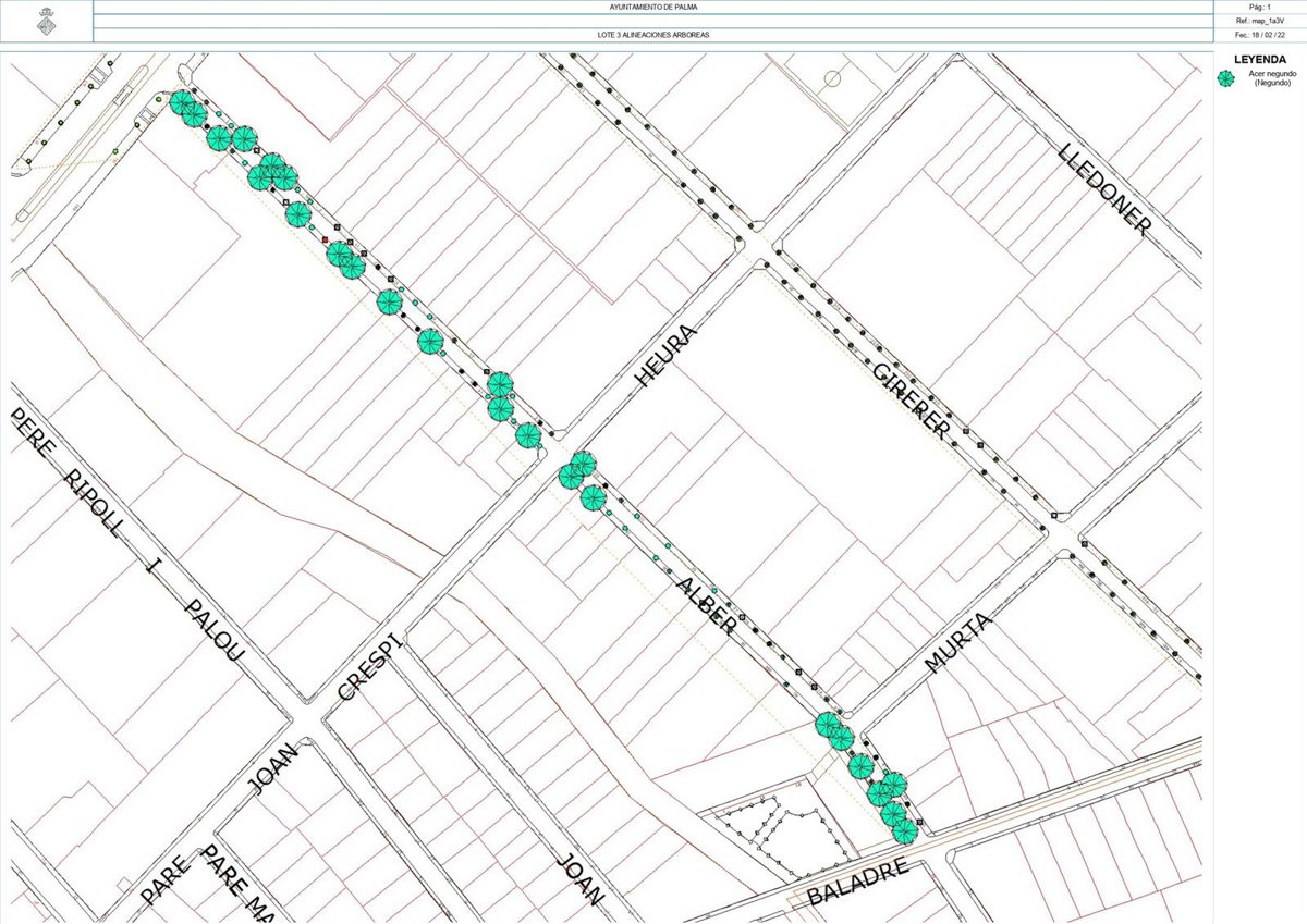 En este punto de Palma se ha coordinado la reparación de las aceras de una isleta con la sustitución de 25 ejemplares de árboles de la especie Acer Negundo, que se eliminan por ser de riesgo y se sustituyen por otros ejemplares como por ejemplo Koelreuteria paniculata fastigiata y Acer monspessulanum, más adecuados a las condiciones climáticas en el espacio que disponen en esta calle de Palma.