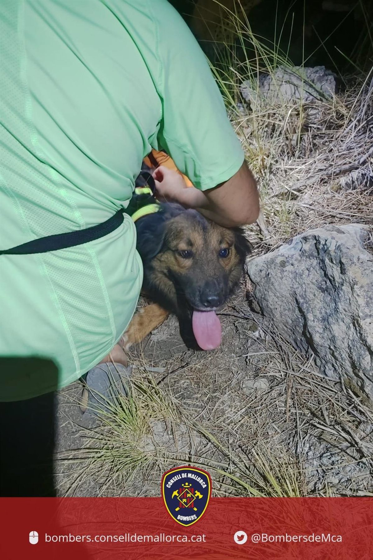 Bomberos de Mallorca han rescatado a un perro que había caído de una altura de 70 metros en Sa Volta des General, en Banyalbufar (Mallorca).