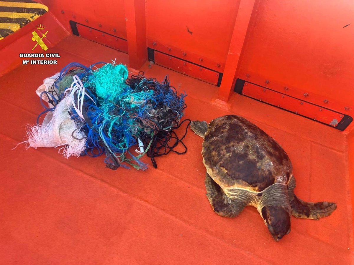 Rescatan una tortuga marina envuelta en basura y plásticos en aguas de Cala Ratjada - GUARDIA CIVIL